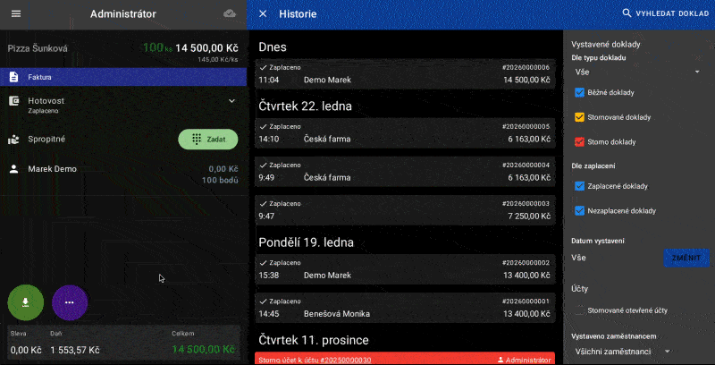 - Zjednotené tržby: Spojili sme widgety Tržby a Otvorené účty. Prepínajte medzi nimi jedným kliknutím.