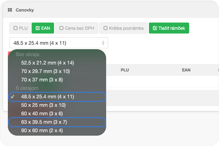 Pridali sme 2 nové formáty pre tlač cenoviek, a tak môžete tlačiť na viac typov hárkov: