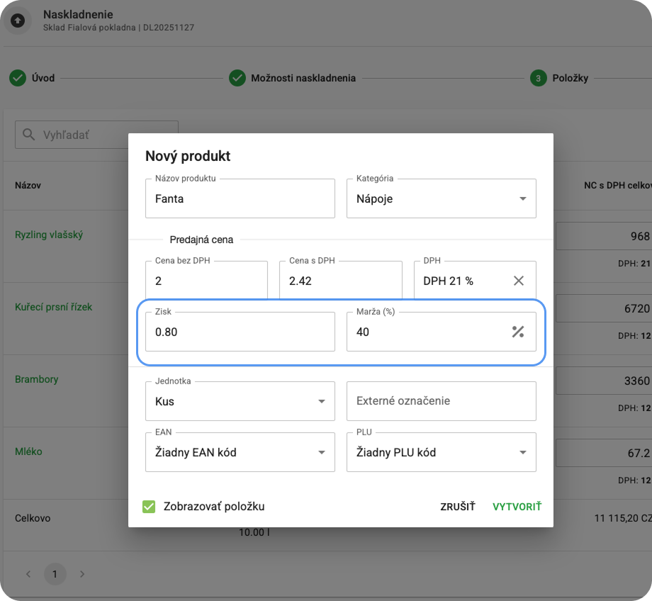 Vytvárate nové produkty pri naskladnení? Potom vás určite poteší, že odteraz môžete už tu definovať maržu/zisk.