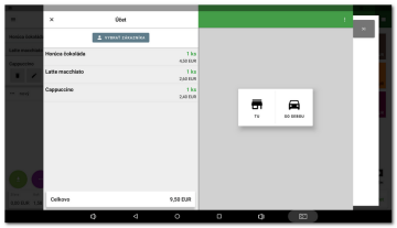 Obsluha si pri nahadzovaní produktu zvolí, či zákazník konzumuje na mieste, alebo si berie jedlo so sebou. Rýchlo a pohodlne či už z Mobilného čašníka alebo z pokladnice.