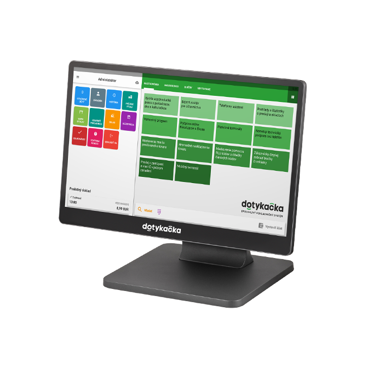 Dotykačka PLATOBNÁ je všestranná 5,5″ dotyková pokladňa so zabudovaným platobným terminálom, 58 mm tlačiarňou a čítačkou kódov. Akceptuje platobné karty Visa, Mastercard a Maestro alebo elektronické stravné lístky.